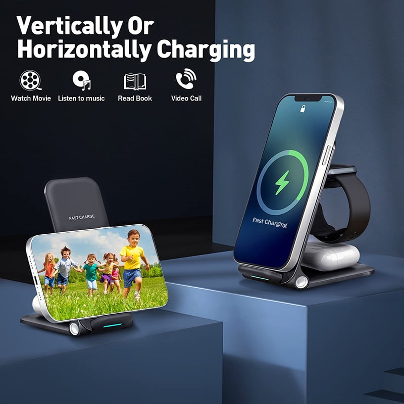 Foldable 3 In 1 Fast Wireless Charger For Mobile Phone Portable Multipurpose Earphone Smart Watch Walmart Com
